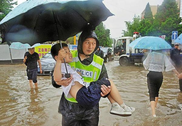 市公安局交警支队副支队长耿华岗说:“面对突降的大暴雨,市公安局交警支队迅速启动恶劣天气紧急预案,警力跟着警情走,要求各交警大队全警动员,全力以赴,哪里有险情就要及时排除,哪里有求助就要及时担当,哪里有拥堵就要及时疏导。针对大雨天气造成的路面湿滑、能见度降低等问题,采取交通管制、间断放行、分段放行、警车带道通行等多种措施加强交通疏导。同时,通过手机短信点对点向重点驾驶人发送安全出行温馨提示,通过直播暴雨路况、警车引路导航、利用喊话器提示车辆减速行驶等方式,指挥疏导过往车辆及行人,提醒人们自觉遵守交通法规,遵章出行,平安回家。当天,全市共出动警力1550名,为雨中受困群众提供帮助310次。”