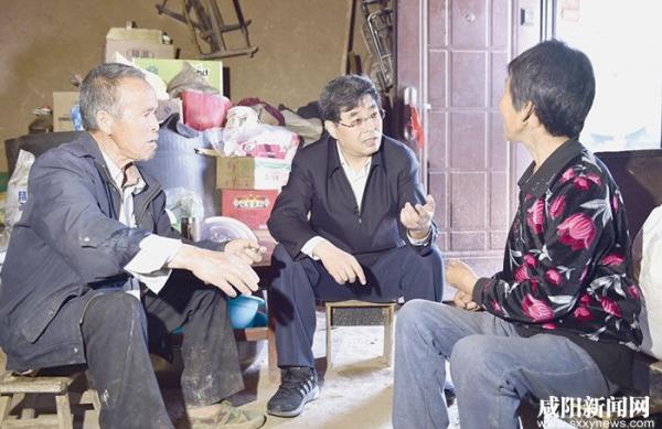 5月23日上午,市委书记岳亮深入永寿县甘井镇赵家塬村暗访脱贫工作时,了解贫困户周林林和老伴的生活情况。(本网 记者 杨宇晗 摄)